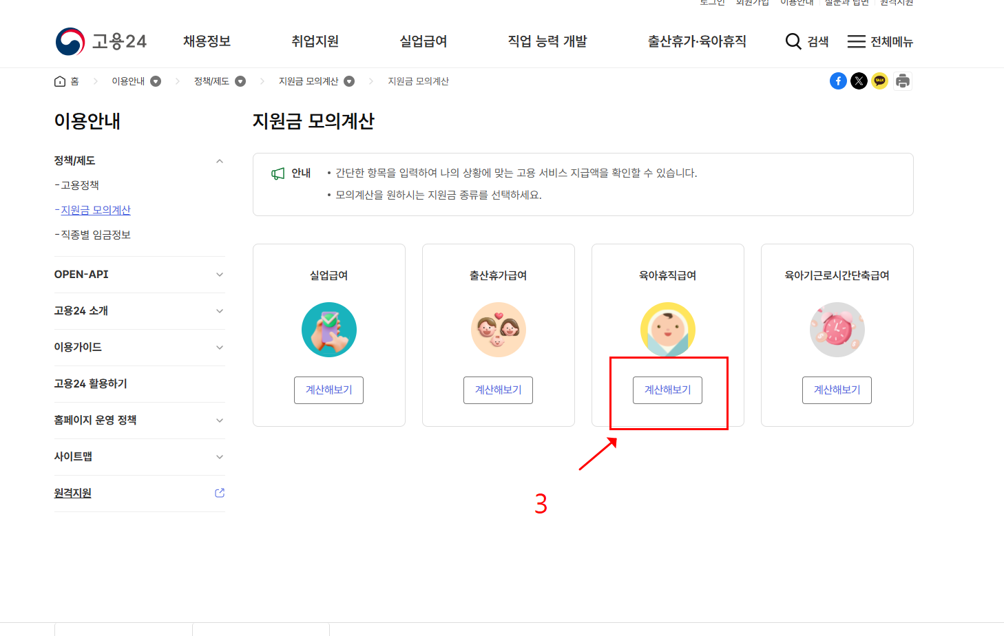 📌 고용보험 홈페이지에서 육아휴직 급여 모의계산 가능